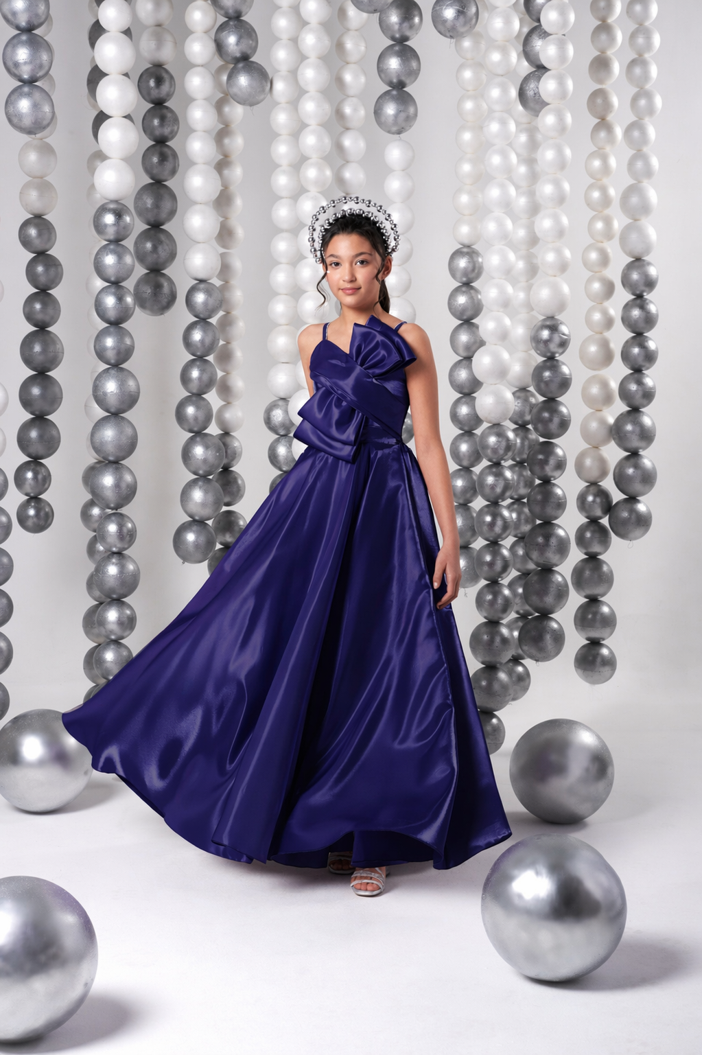 Göz alıcı ve sofistike tasarımıyla öne çıkan bu kız çocuk elbisesi, parlak saten dokusu ve akıcı etek yapısıyla zarif bir siluet sunar. Tek omuz detayını vurgulayan büyük fiyonk tasarımı elbiseye modern ve dikkat çekici bir hava katarken, hafif ve rahat kumaşı gün boyu konfor sağlar. Işığı yansıtan canlı rengi sayesinde özel günlerde etkileyici bir görünüm sunan bu model, doğum günü, düğün ve davet gibi organizasyonlar için şıklığı ve rahatlığı bir arada arayanlar için ideal bir tercihtir.