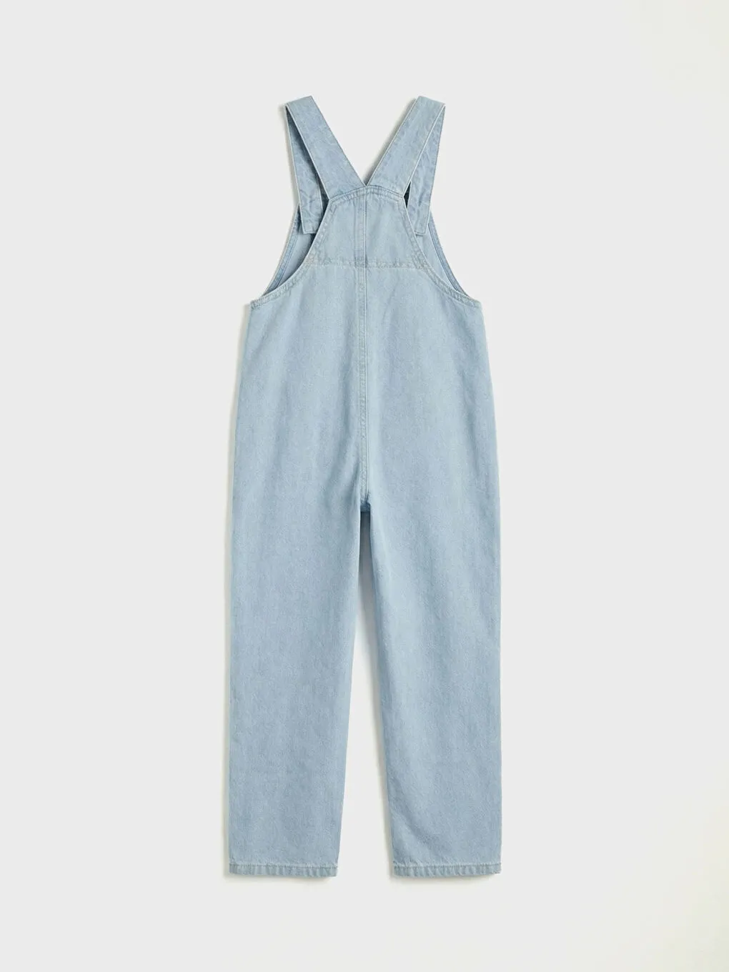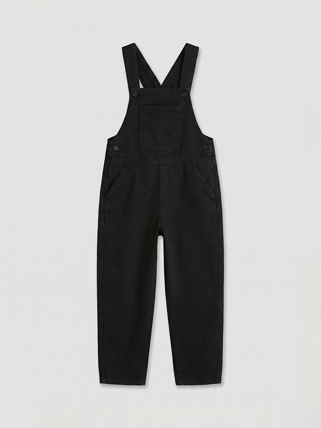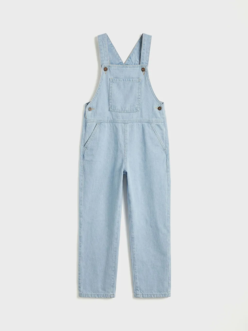 Erkek çocuk jean salopet, %100 pamuklu denim kumaştan üretilmiştir. Ayarlanabilir askılı, göğüs ve yan cepli olup, yanları düğme kapamalıdır.
